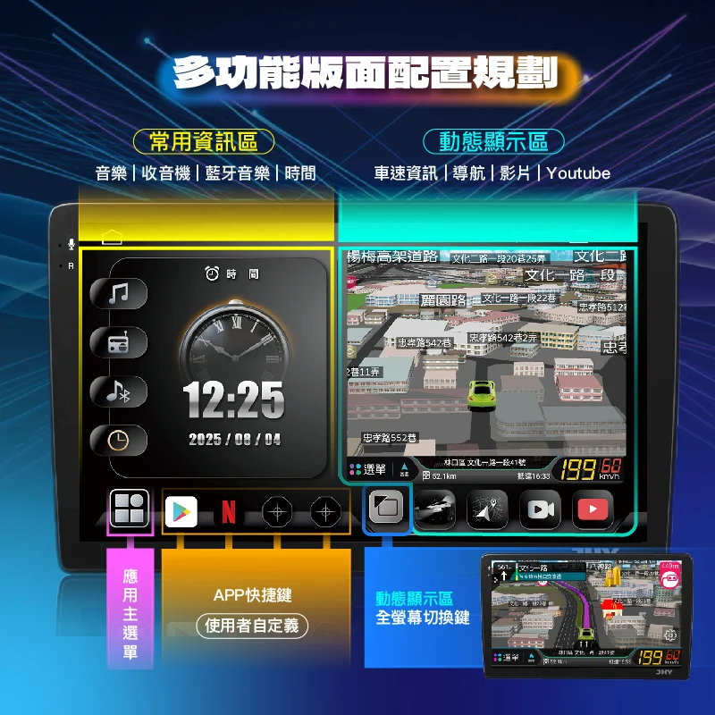 安卓車機(Android車用主機)是一款以Android系統為核心的多媒體主機,可支援導航、音樂、YouTube、CarPlay、Android Auto等功能。安裝後可將原車螢幕升級為智慧影音系統,操作更方便、娛樂更豐富。